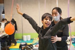 すべての長さが違っている為、子どもたちはそれぞれの手が届く高さにつるされている風船の下に移動して、勢いよく風船にアタックしていきます🔥