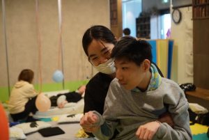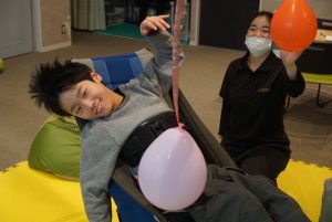 手を少し動かすだけで届く風船は、リラックスされているお友だちも気軽に遊べるスポットに🌟
