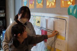 壁に貼られた手作りの双六の盤面の登場に、子どもたちの期待はどんどん高まっていました👀