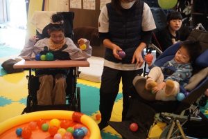 鬼退治が終わると、みんなでカラーボールを使って『玉入れ』をしました(*^^)v