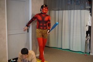 扉を開けて登場したのは”赤鬼さん”です👹