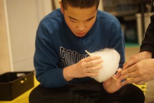 完成したわたあめを触ってどのような形をしているのかを確かめています✅