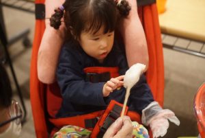 ふわふわのわたあめクッキングでは『どうやったら、ふわふわのわたあめ』が完成するのかな❓と挑戦されるお友だちが多く、ペアを組んだスタッフも「上手くできるかな❓」とドキドキしながら一緒に割り箸を回していました💦