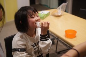 完成したわたあめが本当に食べれるのかを確認しています( ^)o(^ )