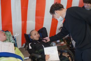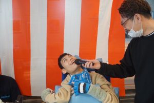 スタッフの声かけに恥ずかしもあるのか、照れた笑顔を浮かべる方もいました( ^)o(^ )