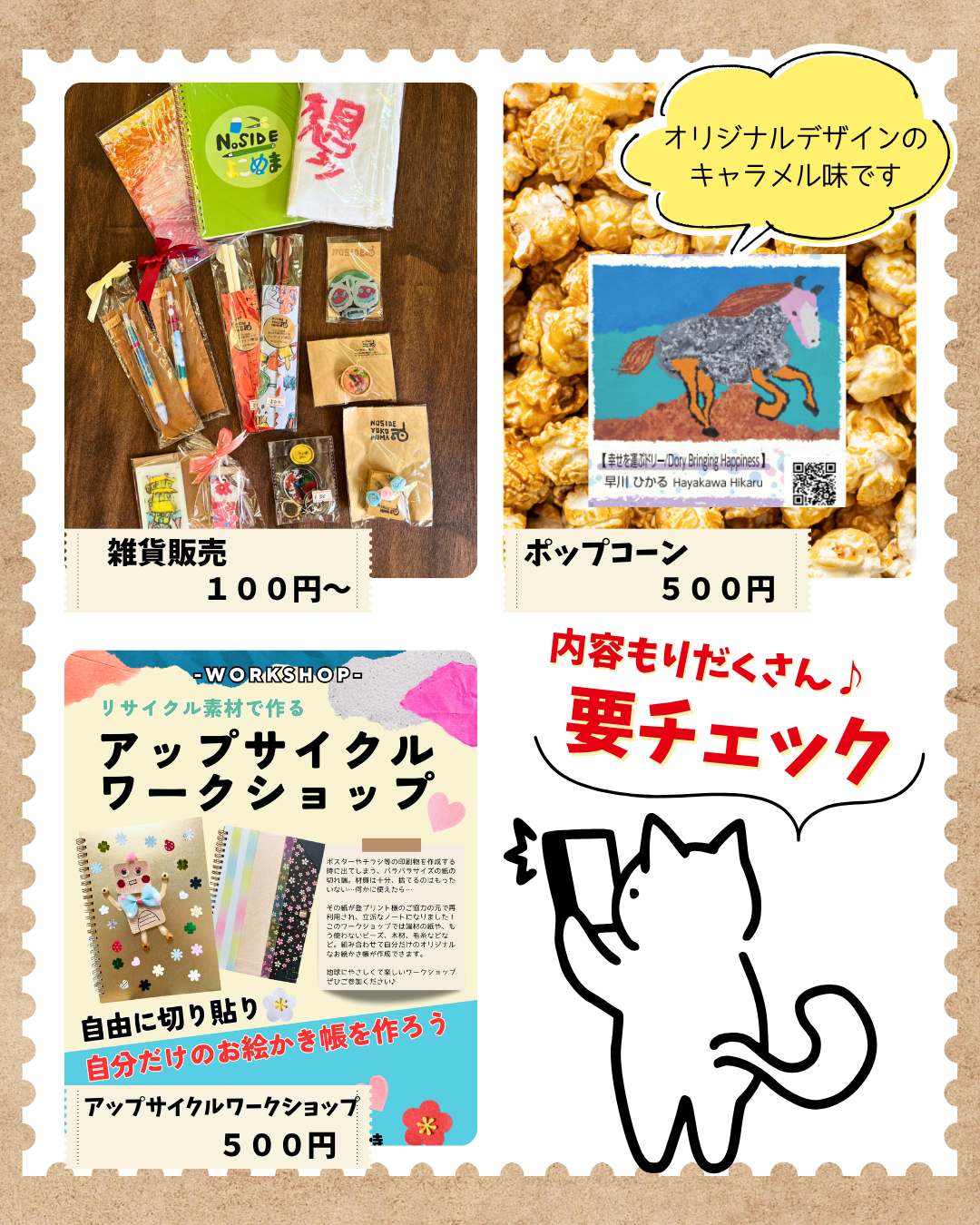 | 出展内容: | 物販・ポップコーンの販売・ワークショップ |