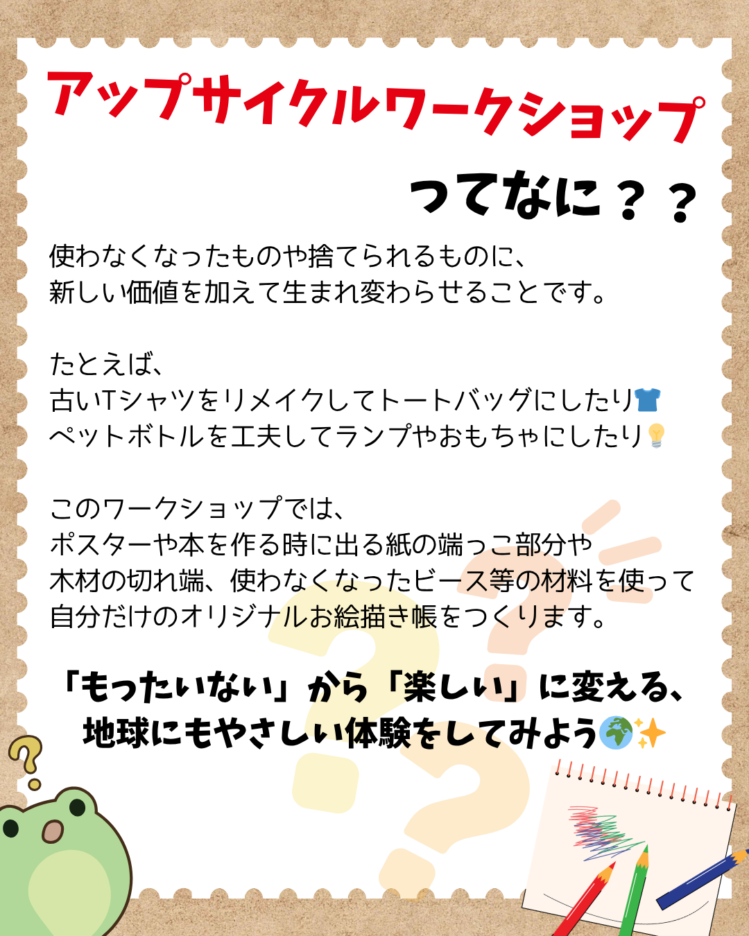 端材を再利用して自分だけのお絵描き帳を作る、アップサイクルワークショップを実施します