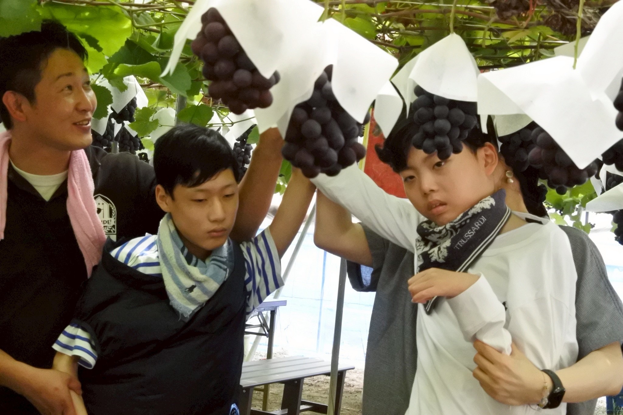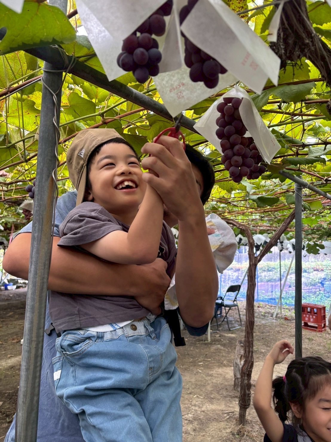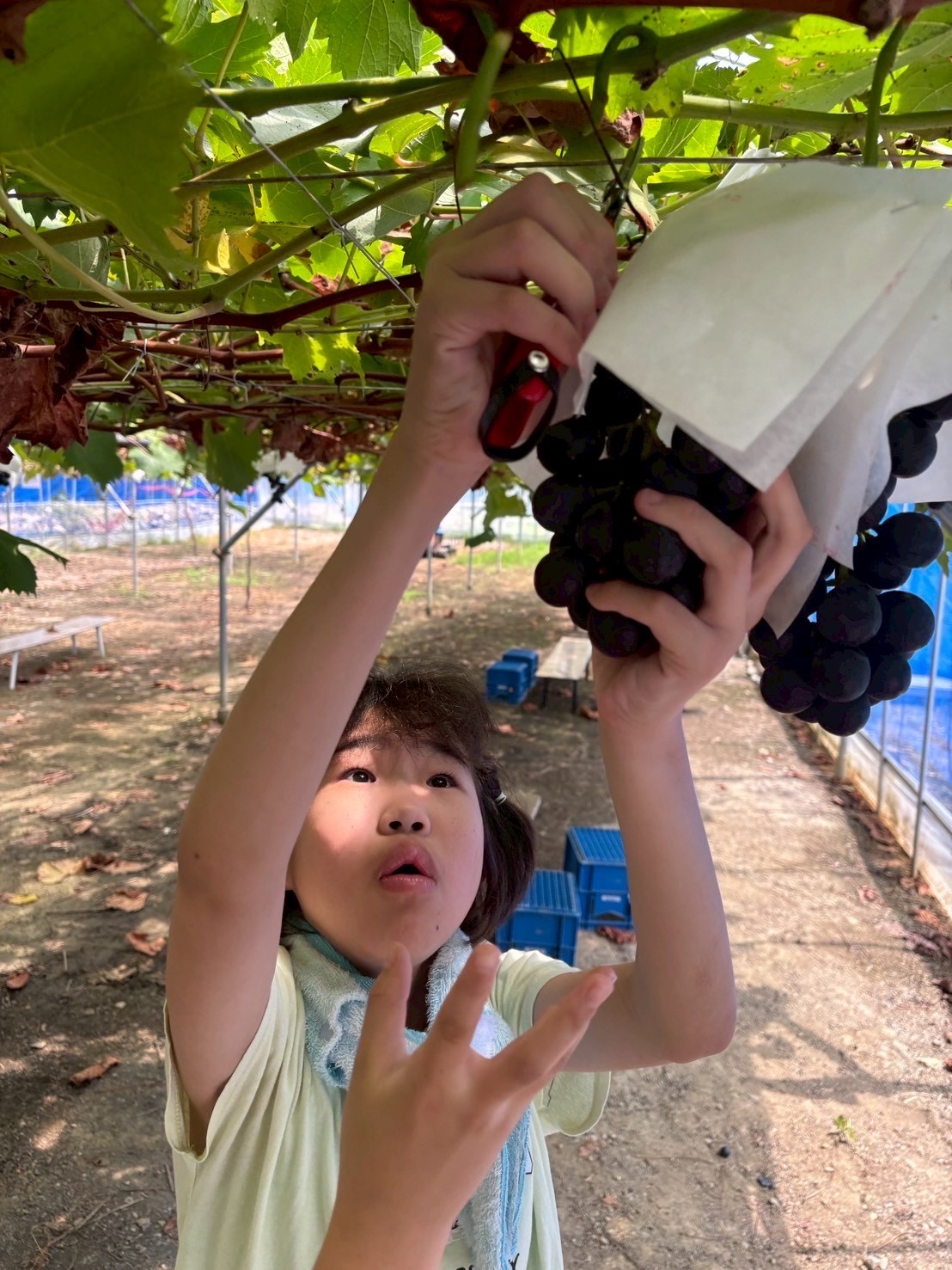 さて、今回はコロナもありできずにいた親子遠足でまるつね葡萄農園さんでぶどう狩りをして来ました♪