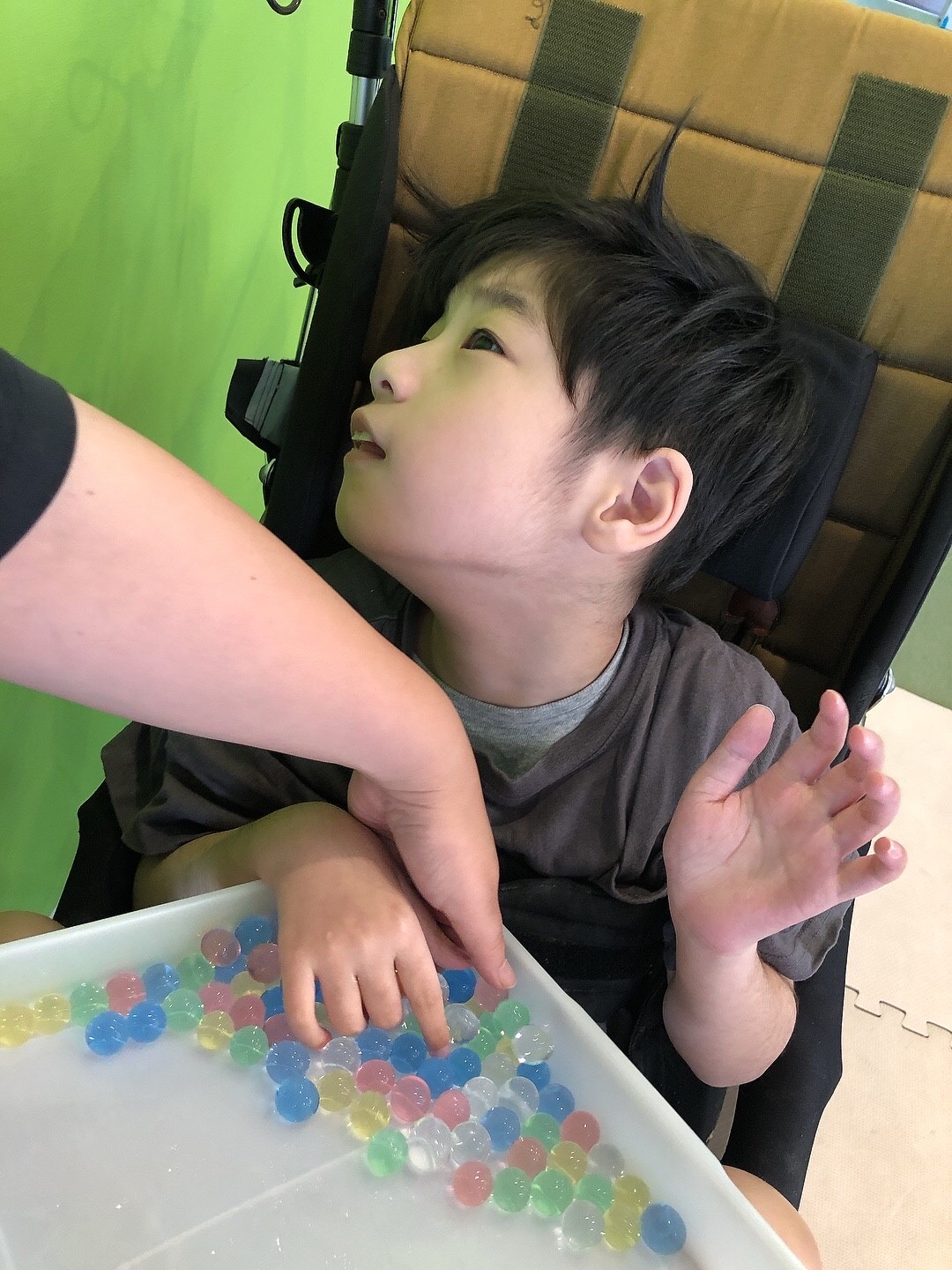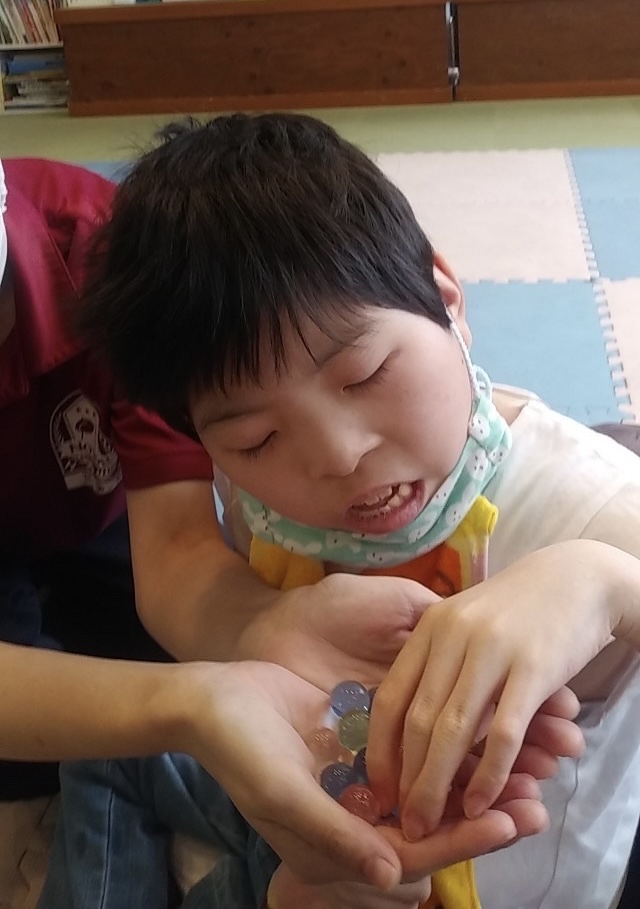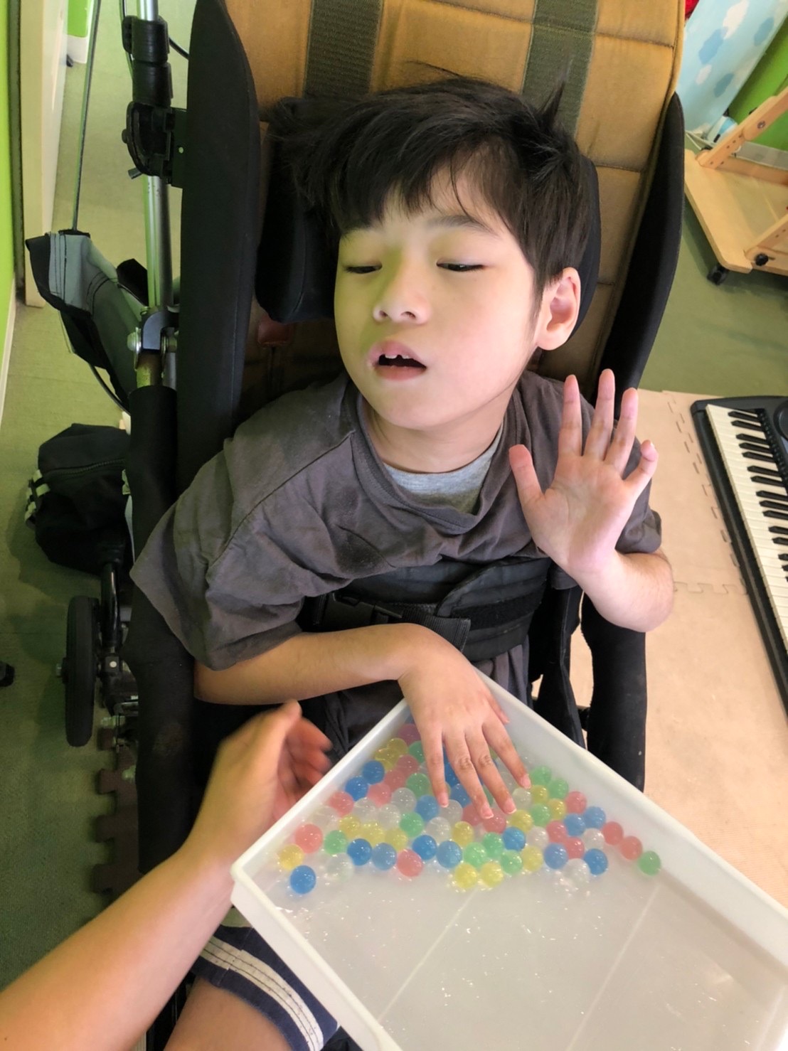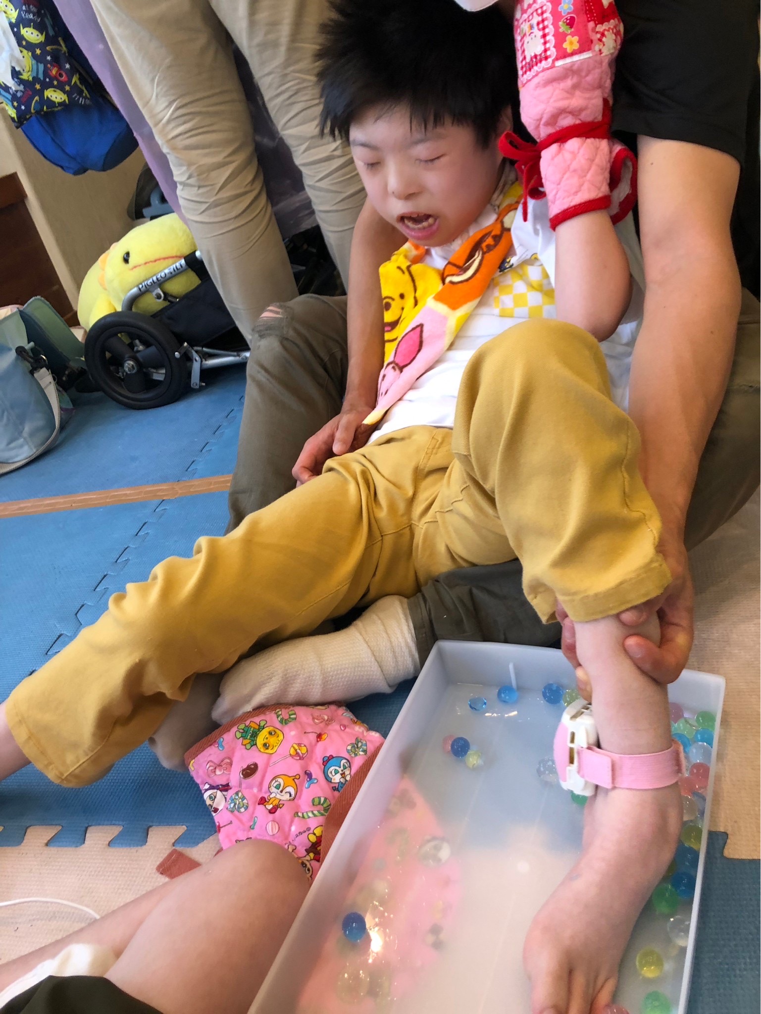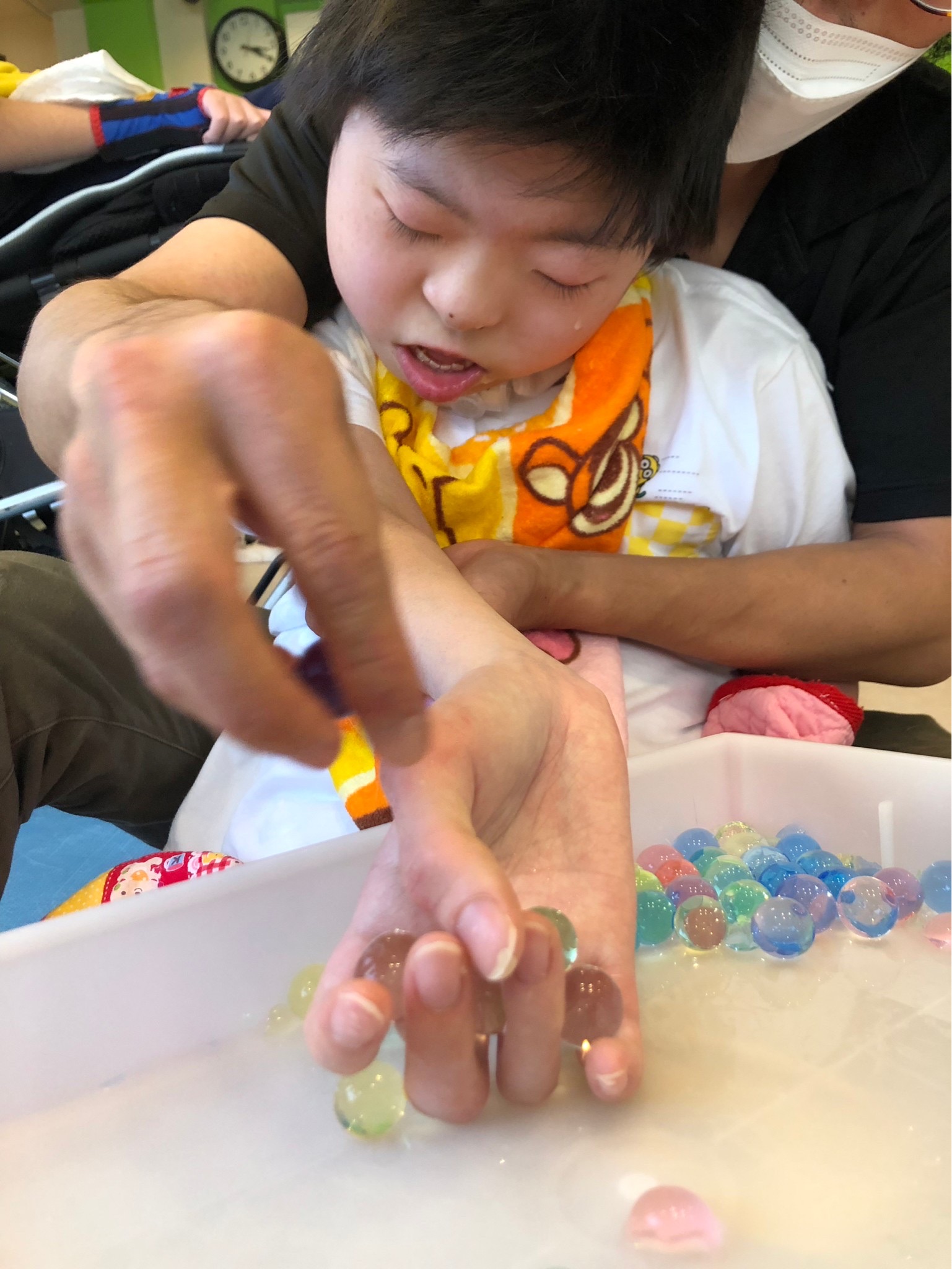 デイでは久しぶりに、水で膨らむぷよぷよボールを使って感触遊びをしました^^