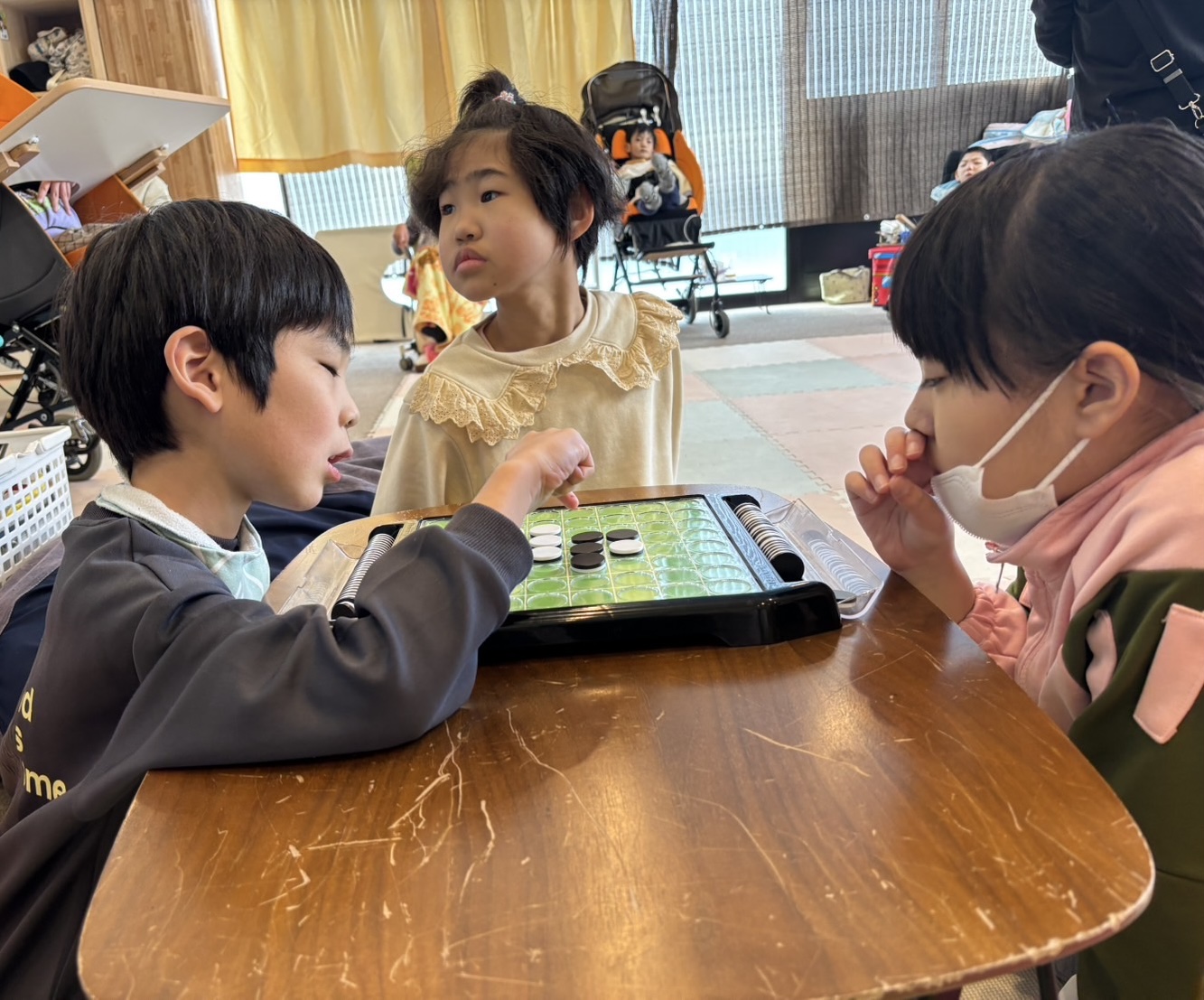 オセロ対決したり 絵本を読んだり ピアノを演奏したり お友達の演奏を聞いてニコニコ スタッフの似顔絵書いたり