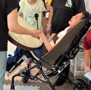 まずはお名前呼びをしながら、鈴や鳴子を鳴らしてご挨拶。